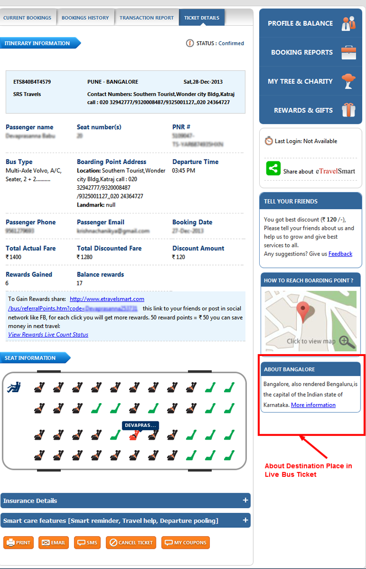 Get detailed information about your destination in confirmed Live Bus Ticket in top lower right corner.